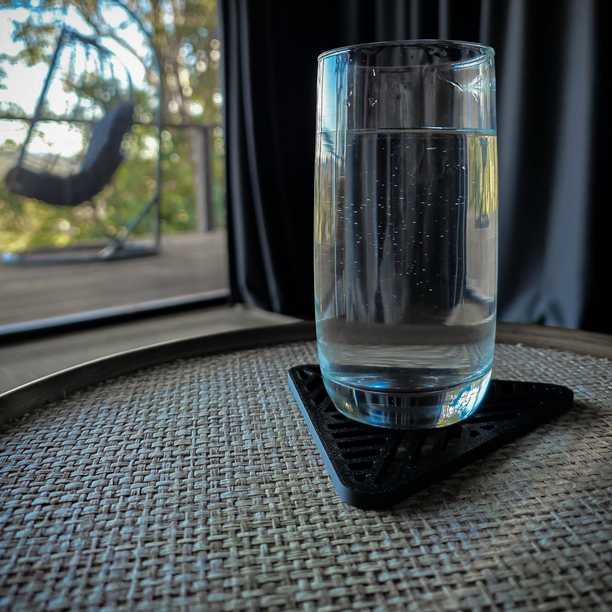 The set includes six coasters accompanied by a matching base for neat storage. Lightweight yet durable, the coasters serve as versatile decor accents, equally suited as desk accessories, bookshelf features, or unique gallery wall elements.